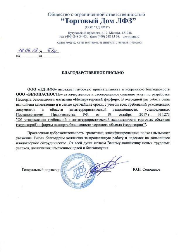 Документы по антитеррористической защищенности для различных объектов, в соответствии с действующим законодательством РФ